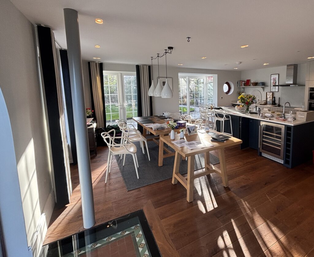 This is a separate room, designed to rouse the host in you, complete with its own bar billiards table, bar pre-stocked with some essential spirits, mixers and beers to kick off your stay, and a 40” TV. This room is ideal to get your soirée in full swing before moving through to the dining room.